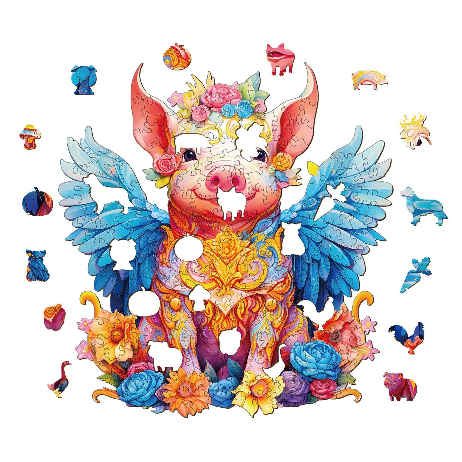 Angel Pig Wooden Jigsaw Puzzle